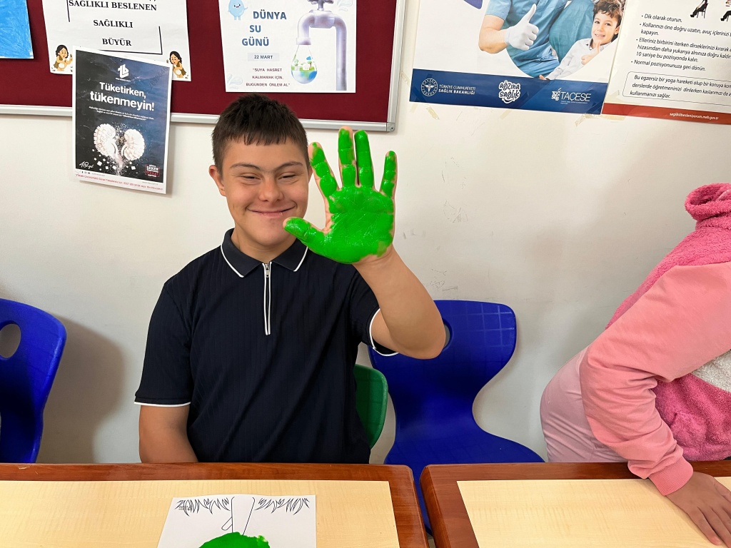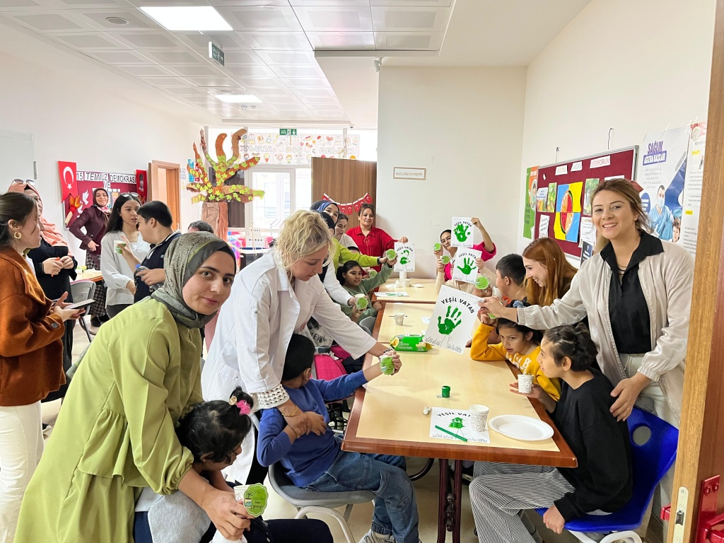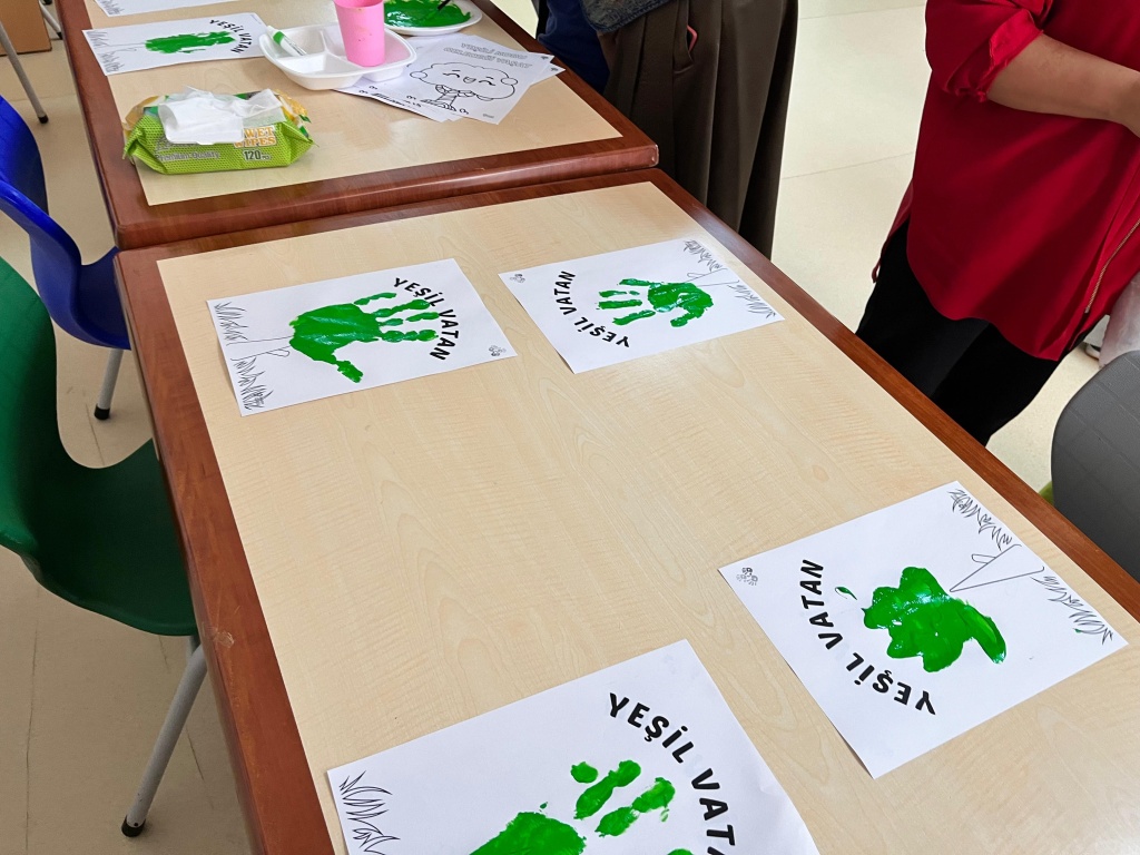 Öğrencilerimiz, öğretmenlerimiz ve personellerimizle birlikte geleceğe nefes olması amacıyla tohum ekim etkinliği yapıldı. Etkinlik kapsamında öğrencilerimiz ayrıca farkındalık oluşturmak için el baskısı çalışması yaptılar.